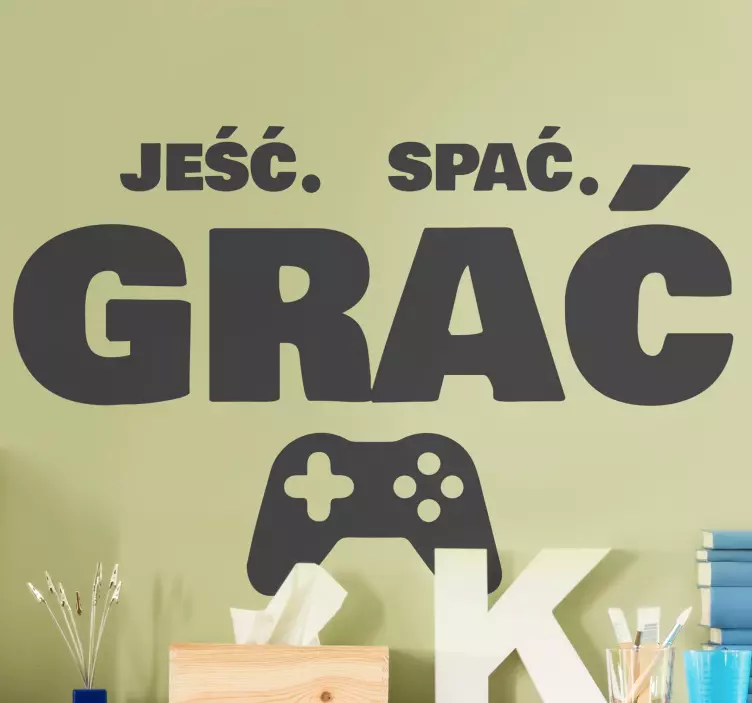 Numer referencyjny: A28326Naklejka ścienna cytat Jedz sen, graj: dekoracja pokoju gracza i sypialni
