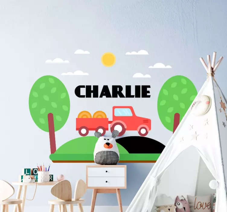 Numer referencyjny: A23769Udekoruj pokój swojego dziecka naszą oryginalną naklejką traktor z własną nazwą