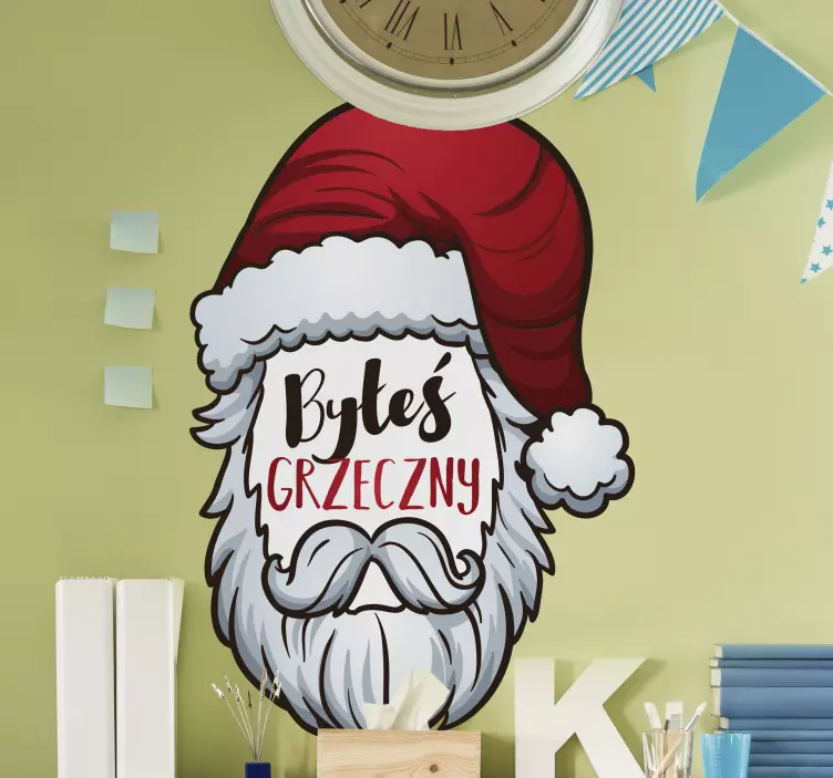 Ta naklejka świąteczna przedstawia twarz Świętego Mikołaja z wielką brodą w czerwonej czapce i z tekstem: "Byłeś grzeczny". Produkt jest idealny do zastosowania w salonie, sypialni, a nawet w jadalni. Aplikacja jest bardzo łatwa i prosta, a dołączona instrukcja aplikacji ułatwi Ci cały proces. Ten produkt jest bardzo wysokiej jakości z matowym wykończeniem i nie tworzy pęcherzyków powietrza ani zmarszczeń na powierzchni. Wybierz naklejkę w dowolnym rozmiarze, a my dostarczymy ją w przeciągu chwili.