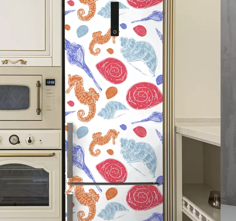 Wprowadź odrobinę nadmorskiego klimatu do swojej kuchni dzięki naszej okleinie na lodówkę konik morski i muszle. Ten kolorowy wzór przedstawia życie morskie, w tym urocze koniki morskie oraz różnorodne muszle, które ożywią Twoje urządzenie i nadadzą mu figlarny, morski charakter. Wzór jest pełen wodnych motywów, które sprawią, że każda chwila spędzona w kuchni będzie przypominać wakacje nad morzem!