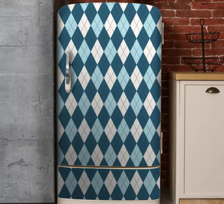 Odkryj niezwykłą okleinę na lodówkę w diamentowy wzór, która łączy w sobie elegancję i nowoczesność. Ten wyjątkowy projekt graficzny wyróżnia się geometrycznym wzorem złożonym z rombów i diamentów w odcieniach niebieskiego. Dzięki temu Twoja lodówka zyska nowy, stylowy wygląd, który z pewnością przyciągnie uwagę gości!