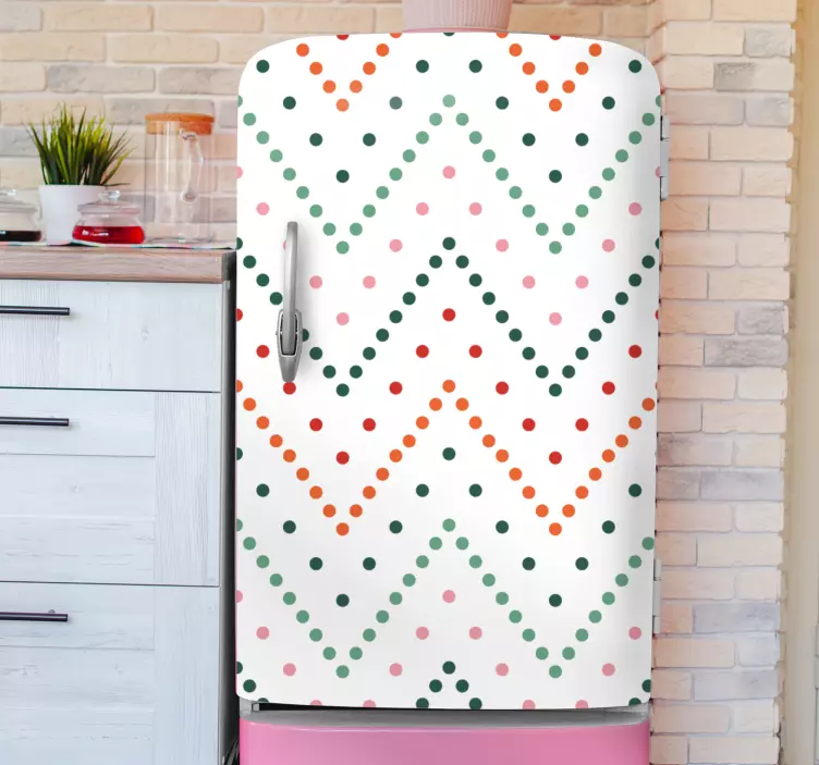 Odkryj naszą okleinę na lodówkę w intensywny wzór chevron, która z pewnością przyciągnie wzrok! Ten nowoczesny projekt łączy w sobie wielobarwność z dynamicznymi wzorami, takimi jak kropki i zygzaki. Wykonana z wysokiej jakości materiałów, nasza okleina jest nie tylko estetyczna, ale też funkcjonalna. Dzięki zastosowaniu satynowego wykończenia, produkt nie odbija światła, co pozwala cieszyć się żywymi kolorami w każdej chwili. Udekoruj swoją lodówkę w nowoczesny sposób!