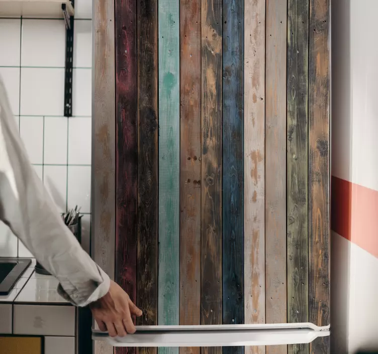 Okleina na lodówkę w stylu wiejskim drewniana to doskonały sposób na wprowadzenie rustykalnego klimatu do Twojej kuchni! Jej kolorowe i teksturowane grafiki przedstawiają namalowane deski, które przypominają naturalne drewno. Ten pionowy projekt sprawi, że Twoja lodówka zyska wyjątkowy charakter, a wnętrze nabierze przytulności. Dzięki temu produktowi stworzysz niepowtarzalną atmosferę, która zachwyci Twoich gości!