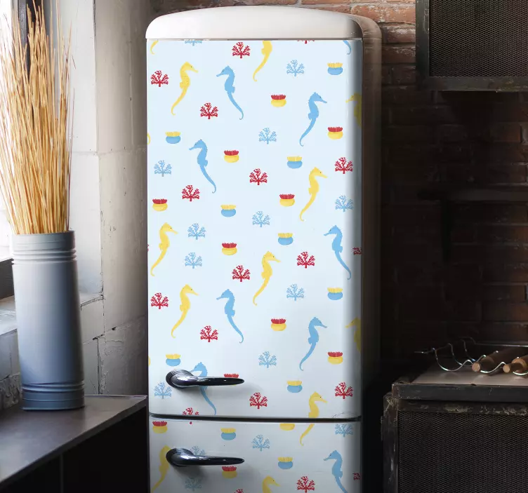 Okleina na lodówkę w wesołe wzory koników morskich to idealny sposób, aby dodać kolorowy i figlarny akcent do Twojej kuchni! Nasz projekt graficzny przenosi Cię w podwodny świat, gdzie koniki morskie tańczą wśród koralowców, a życie morskie ożywia każdą przestrzeń. Wyjątkowe wzory wprowadzą odrobinę morskiej fantazji do Twojego domu, sprawiając, że lodówka stanie się nie tylko urządzeniem, ale także radosnym elementem dekoracyjnym!