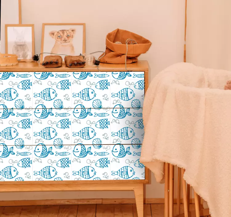 Okleina na lodówkę z wesołymi motywami ryb to fantastyczny sposób na ożywienie Twojego wnętrza! Jej kolorowy, podwodny wzór z uśmiechniętymi rybami i bąbelkami wprowadzi do pokoju dziecięcego radosną atmosferę. Rysunki przedstawiające życie morskie, muszle i kapryśne ryby sprawią, że każda szuflada stanie się prawdziwą przygodą w oceanie zabawy. To idealne rozwiązanie dla każdego, kto pragnie wprowadzić do swojego wnętrza elementy radości i fantazji!