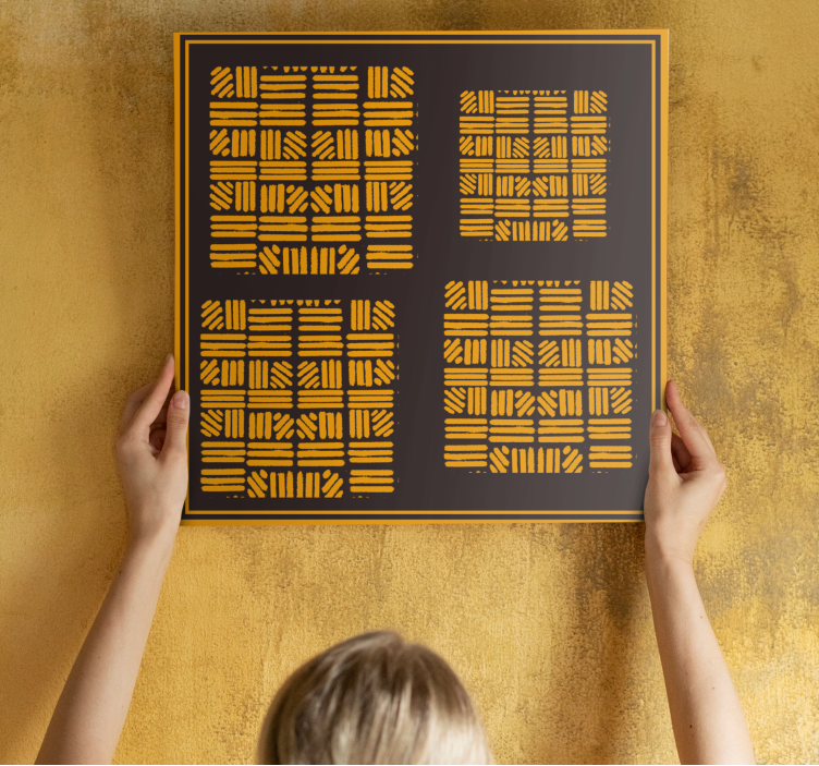 Witamy w świecie sztuki nowoczesnej! Nowoczesny obraz w koncepcji geometrycznego układu to niezwykłe dzieło, które zachwyca swoją grafiką. Zawiera on motyw afrykański, gdzie złote i żółte akcenty harmonijnie współgrają z abstrakcyjnymi liniami oraz kształtami. Całość uzupełnia geometryczny krata, która nadaje mu unikalny charakter. Obraz jest oprawiony w elegancką ramkę, co sprawia, że staje się idealnym elementem dekoracyjnym w każdym wnętrzu!