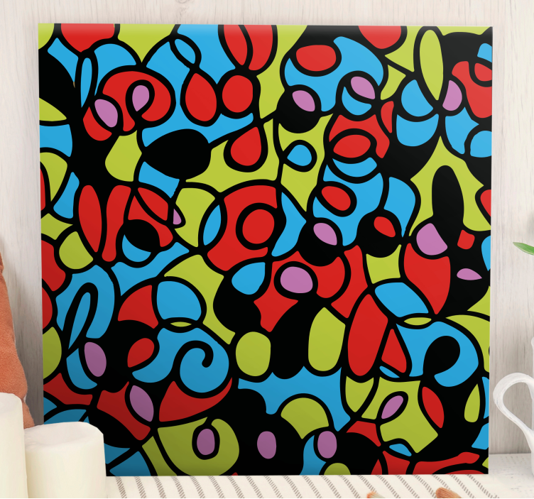 Numer referencyjny: Q8726Wibracyjna kompozycja z dynamicznym zestawem wirujących kształtów. Projekt charakteryzuje się zabawną mieszanką kolorów, w tym intensywnymi czerwieniami, niebieskimi i zielonymi, splecionymi w abstrakcyjny wzór. Ten fascynujący element ożywia każdą przestrzeń swoim żywym designem.