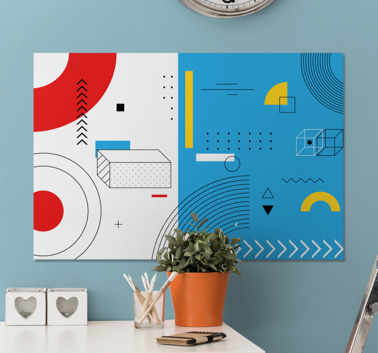 Odkryj niezwykły obraz geometryczny kompozycja kształtów geometrycznych, który zachwyca swoją abstrakcyjną formą i różnorodnością kształtów. W tej unikalnej kompozycji znajdziesz okręgi, trójkąty, prostokąty, strzałki i kropki, które tworzą harmonijny wzór. Każdy element jest starannie zaprojektowany, aby przyciągać wzrok i dodawać charakteru każdemu wnętrzu. To idealna propozycja dla osób, które pragną wprowadzić do swojego domu nowoczesny i artystyczny akcent!