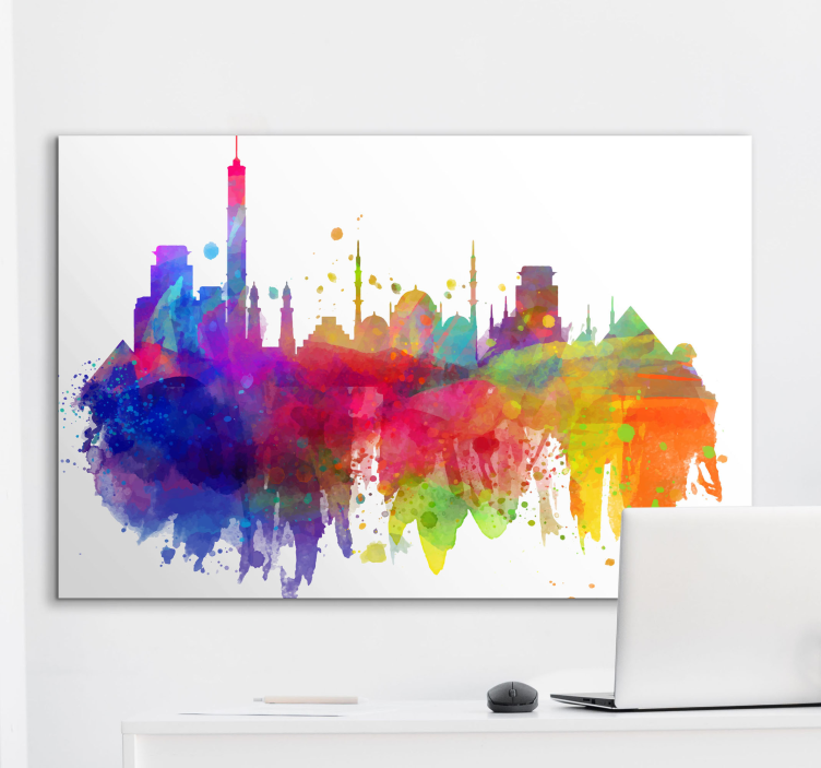 Przedstawiamy Obraz miasto kolorowa panorama miasta, który zachwyca swoją artystyczną formą! Ta kolorowa grafika przedstawia majestatyczne drapacze chmur i wieżowce, które wznoszą się w górę, tworząc niesamowitą sylwetkę na tle nieba. Dzięki efektownemu pluśnięciu farby i technice akwarelowej, obraz emanuje energią i nowoczesnością, idealnie wpisując się w trendy współczesnej sztuki. To wyjątkowe dzieło sprawi, że każde wnętrze nabierze charakteru i oryginalności, wprowadzając do niego kolor i życie!