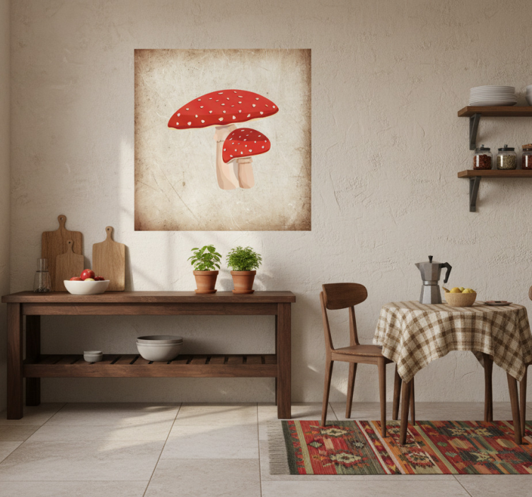 Umieszczenie plakatu do kuchni z ilustracją muchomora amanita jest niezwykle proste i przyjemne! Najlepiej skorzystać z dwustronnej taśmy samoprzylepnej, która zapewni trwałe przymocowanie do ściany. Możesz również oprawić plakat, używając mocniejszych klejów, co dodatkowo podkreśli jego elegancję. Alternatywnie, użyj pinezek lub blu-tack, aby w łatwy sposób umieścić go w wybranym miejscu. Pamiętaj, aby przytrzymać każdy pasek przez 10 sekund, by zapewnić mocne przytrzymanie!