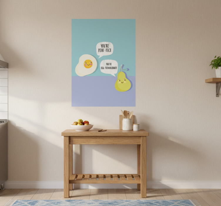 Plakat do kuchni z jajkiem i gruszką w żartobliwym stylu