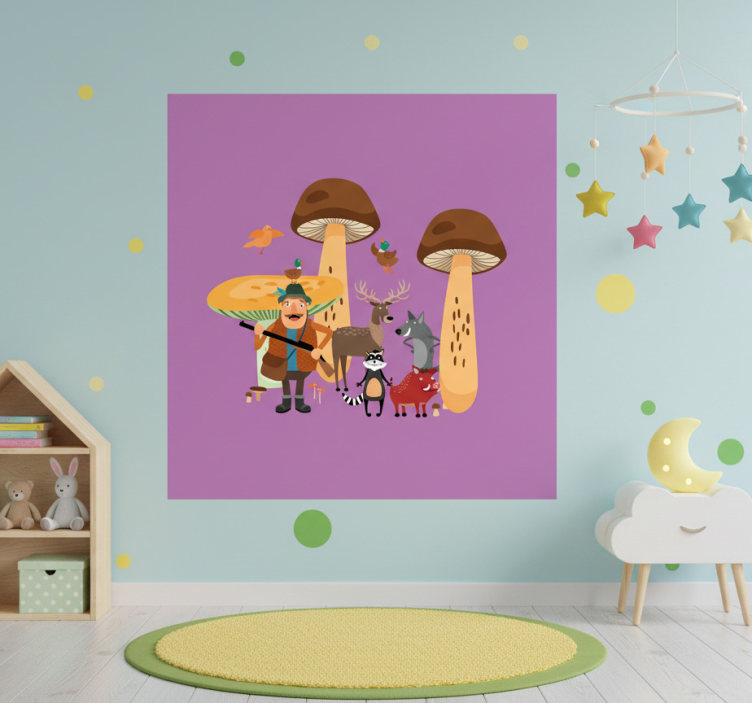 Plakat do pokoju dziecka ptaki w leśnym grzybie