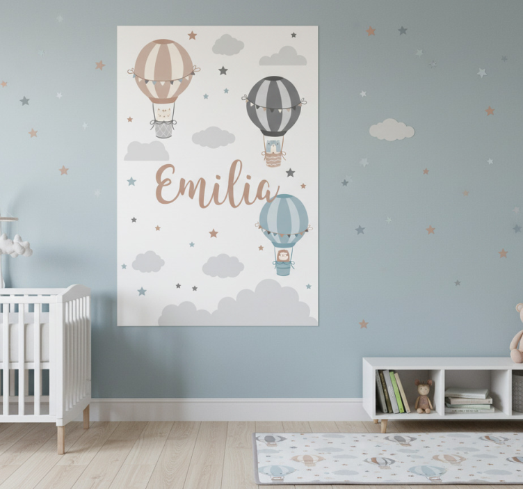 Plakat do pokoju dziecka w pastelowe balony i chmury