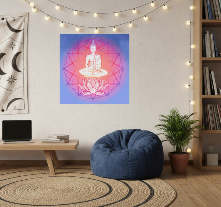 Plakat do salonu mandala buddy medytującej przyjemnie umieścisz w swoim wnętrzu, korzystając z dwustronnej taśmy samoprzylepnej, co zapewni mu stabilność i estetyczny wygląd. Możesz go również oprawić lub użyć mocniejszych klejów, aby zapewnić dodatkową pewność. Na pewno zachwyci Cię również opcja użycia pinezek lub blu-tack, które pozwolą na łatwą i szybką zmianę lokalizacji plakatu, gdy zajdzie taka potrzeba!