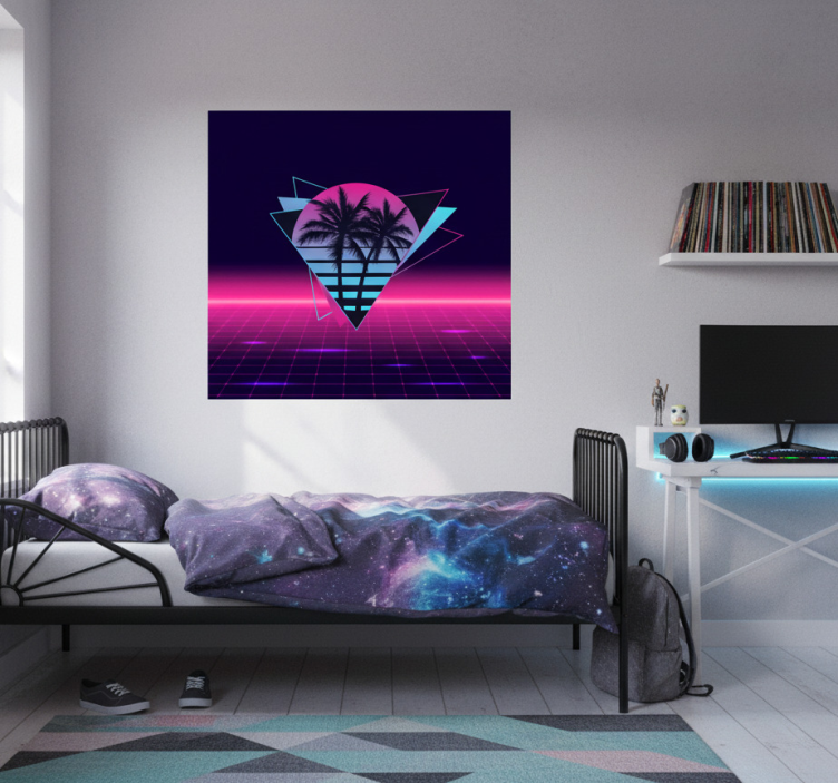 Ten plakat do salonu w stylu vaporwave z palmą to idealne rozwiązanie dla osób poszukujących oryginalnych sposobów na udekorowanie swojego wnętrza. Jego unikalny styl doda charakteru i pozytywnej energii każdemu pomieszczeniu. Dzięki intensywnym kolorom i futurystycznemu designowi, staje się on centralnym punktem w aranżacji, przyciągając wzrok gości. To doskonały wybór, aby wprowadzić do swojego domu atmosferę relaksu i radości!