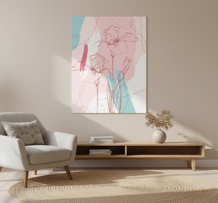 Umieść Plakat kwiaty i rośliny w abstrakcyjnych wzorach na ścianie, używając dwustronnej taśmy samoprzylepnej, co zapewni jego stabilne mocowanie. Możesz także oprawić go w ramę lub przyczepić za pomocą pinezek lub blu-tacku, co umożliwia łatwą zmianę miejsca jego ekspozycji. Ta dekoracja z pewnością przyciągnie wzrok i stanie się centralnym punktem Twojego wnętrza!