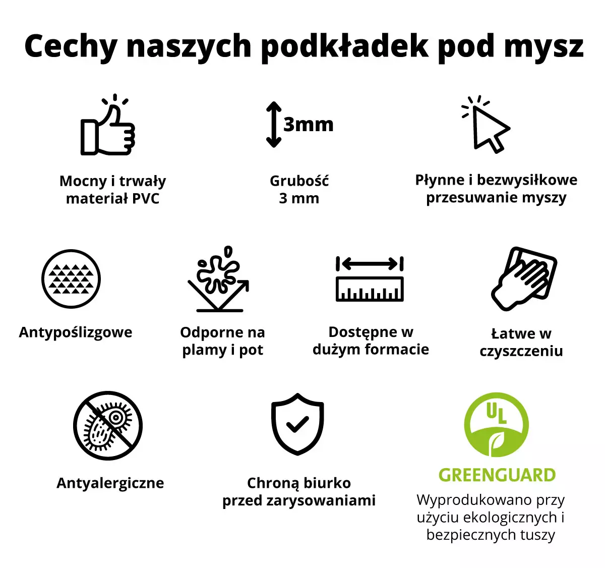 ANTYPOŚLIZGOWE - doskonała przyczepność podkładki do biurka