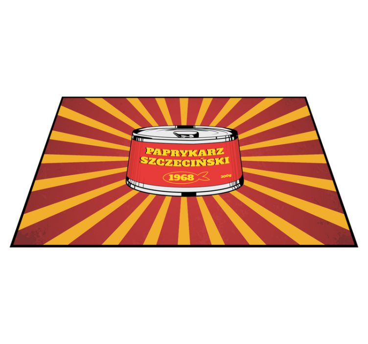 Jest to ilustracja sunburst w czerwone, żółte paski wraz z polskim paprykarzem w puszce. Ta inspirowana polska podkładka z motywem jedzenia pięknie przyozdobi stół jadalny, aby stworzyć bardziej domową aurę jadalni.