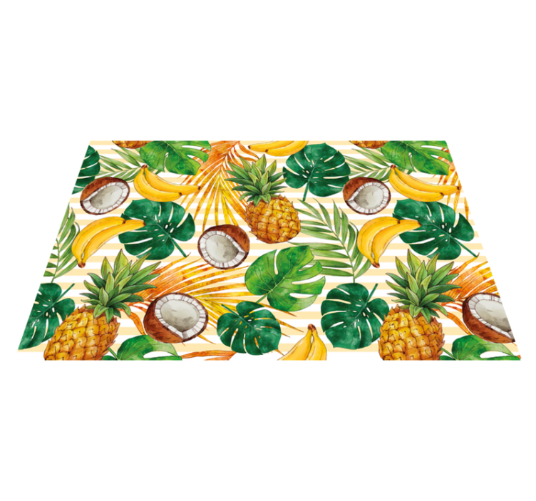 Ręcznie malowane letnie tropikalne w formie podkładki. Ciesz się wszystkimi wyjątkowymi rzeczami, które możesz wykorzystać do zmiany wyglądu swojej jadalni. Produkt ten będzie świetnie prezentował się podczas lunchu, śniadania lub kolacji. Podkładka wykonana jest z trwałego materiału, który ma wodoodporną powłokę i świetny wygląd. projekt przedstawia żółto-zielony malowany wzór liści z pokrojonym kokosem. Wybierz najlepszy rozmiar dla siebie i ciesz się z twojej nowej białej podkładki w kolorowe ananasy i kokosy.