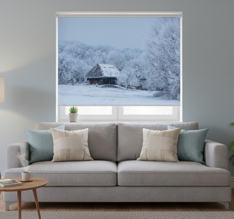 Biała roleta do śnieżnego dziedzińca domu