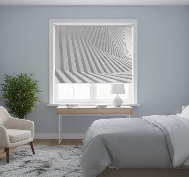 Biała roleta fale geometryczne w abstrakcyjnym stylu