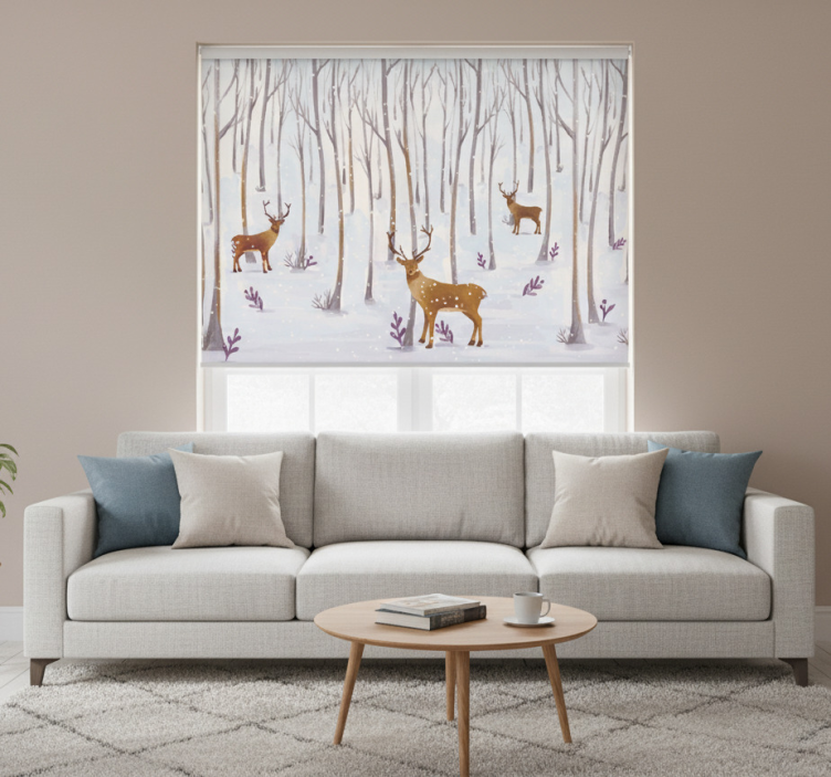 Biała roleta leśny krajobraz zimowy z zwierzętami