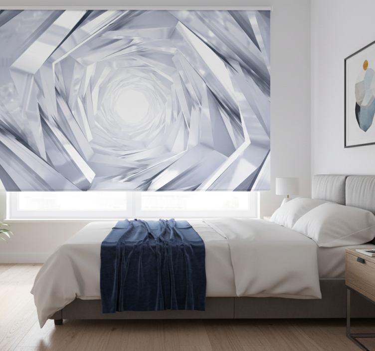 Biała roleta w abstrakcyjnym geometrycznym tunelu