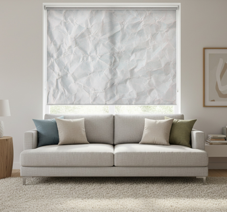 Biała roleta w fakturę białego, pomarszczonego papieru