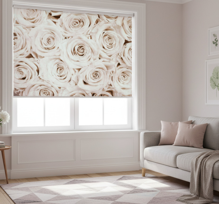 Biała roleta z eleganckim różowym wzorem kwiatowym