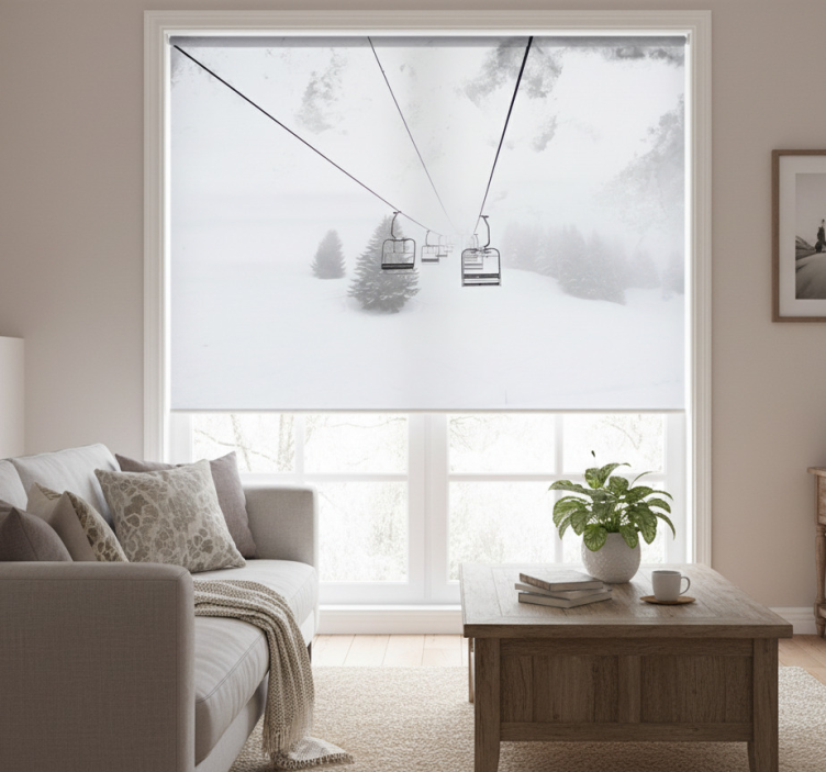 Biała roleta z fotografią kolejki linowej na śniegu