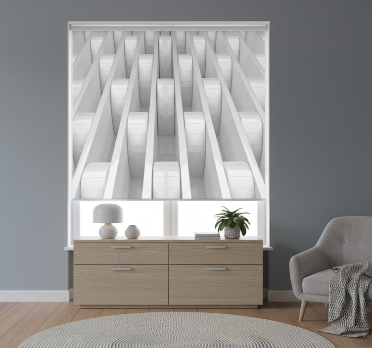 Biała roleta z trójwymiarowym wzorem geometrycznym