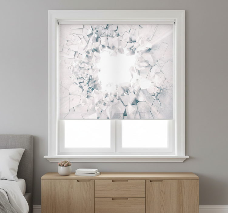 Biała roleta z wybuchającymi kształtami geometrycznymi
