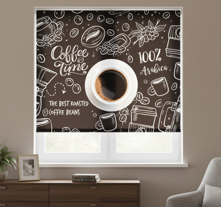 Czarna roleta z motywem kawy