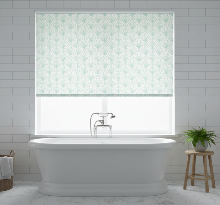 Niebieska roleta liście w jasnym akwamarynie na białym tle