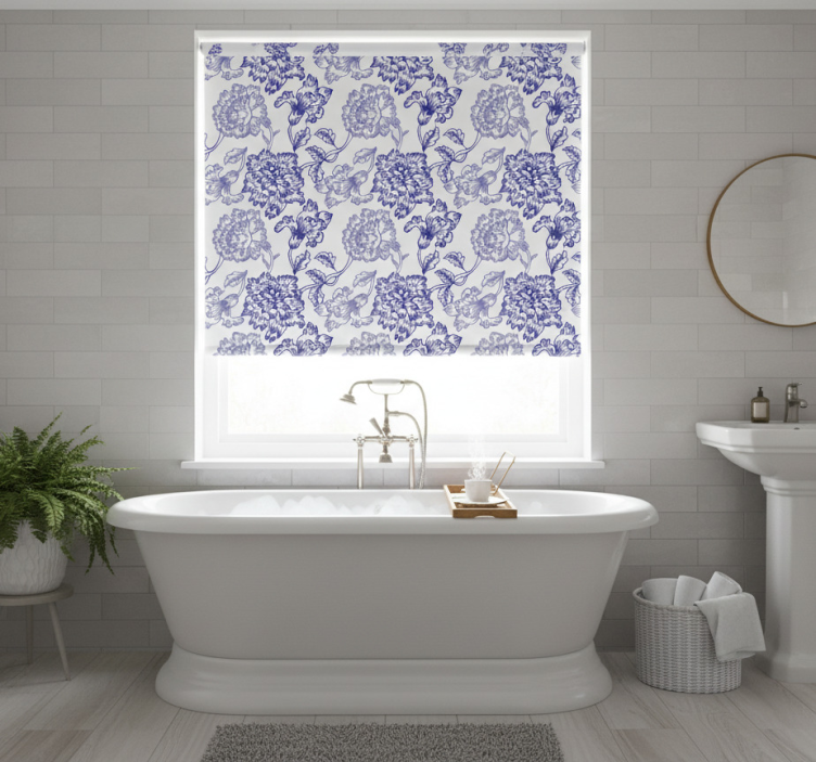 Niebieska roleta w eleganckie kwiatowe wzory