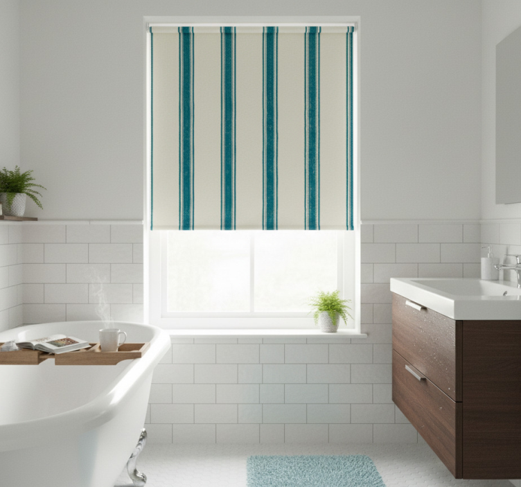 Niebieska roleta w jasnoniebieskie pionowe linie