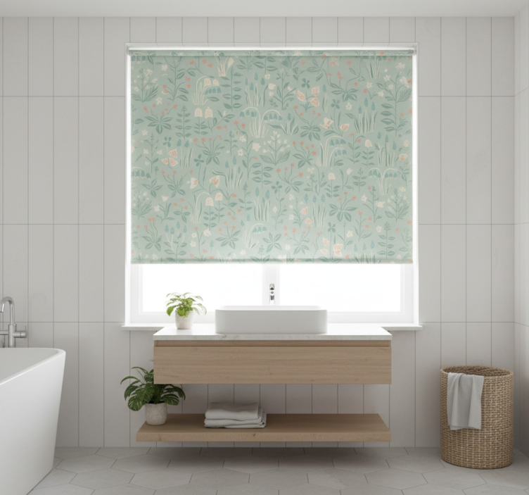 Niebieska roleta w stylu skandynawskim z kwiatami