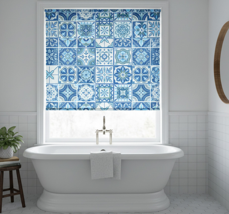 Niebieska roleta wzór talavera w odcieniach niebieskiego