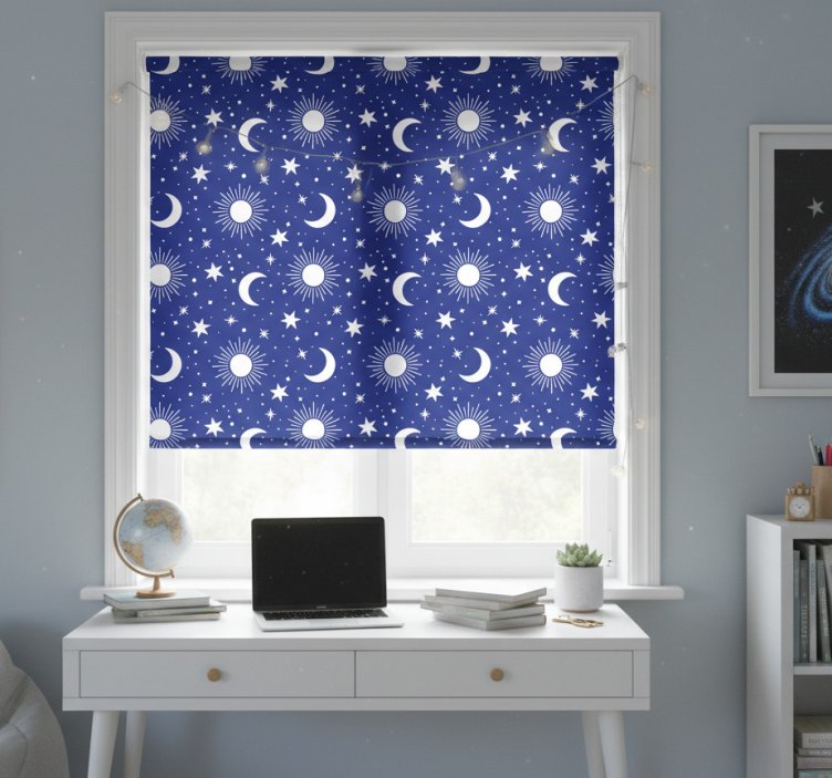Roleta dla nastolatka niebieskie tło z gwiazdami i księżycem