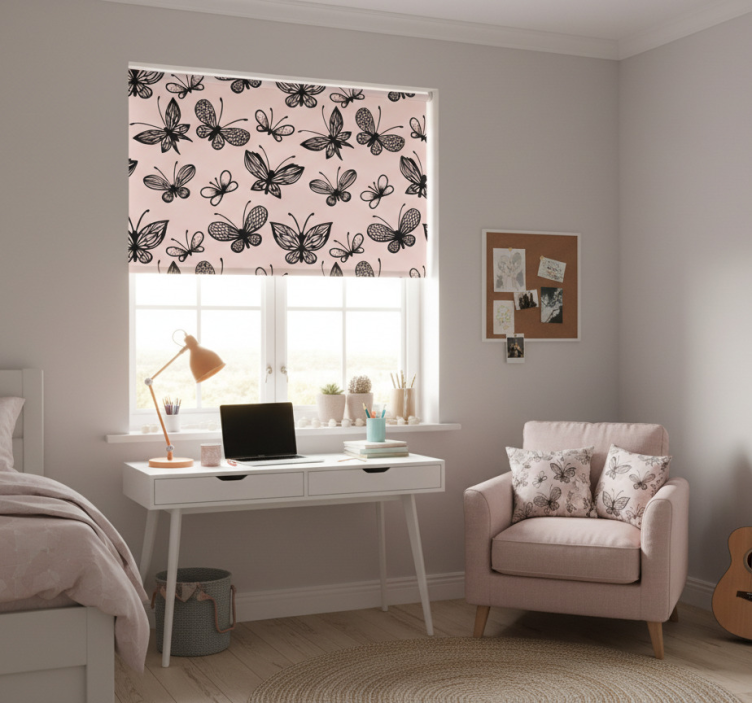 Roleta dla nastolatka z motywem małych czarnych motyli