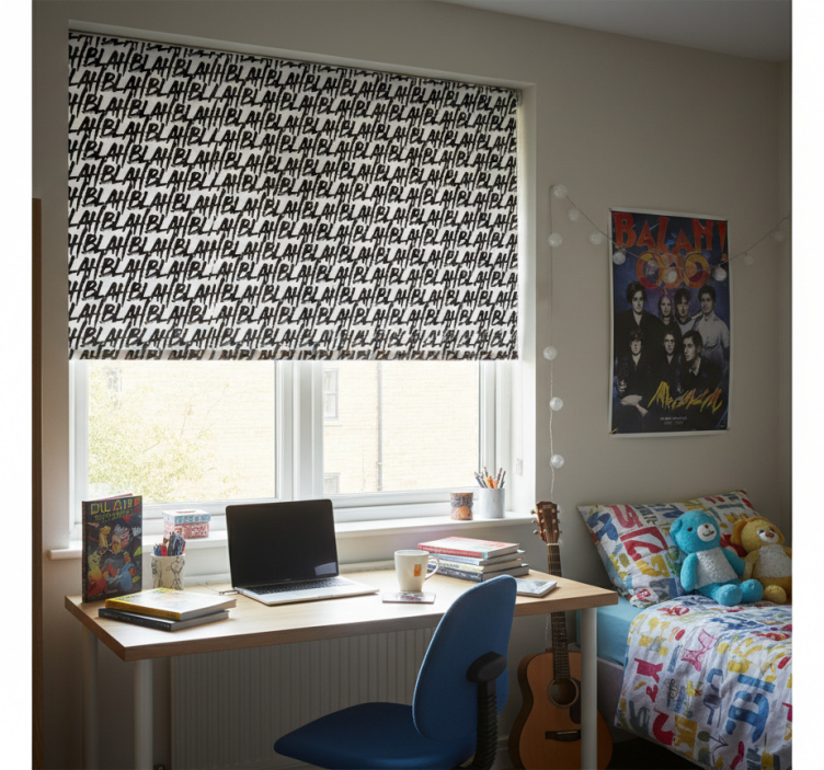 Roleta dla nastolatka z wzorem tekstu dekoracyjnego