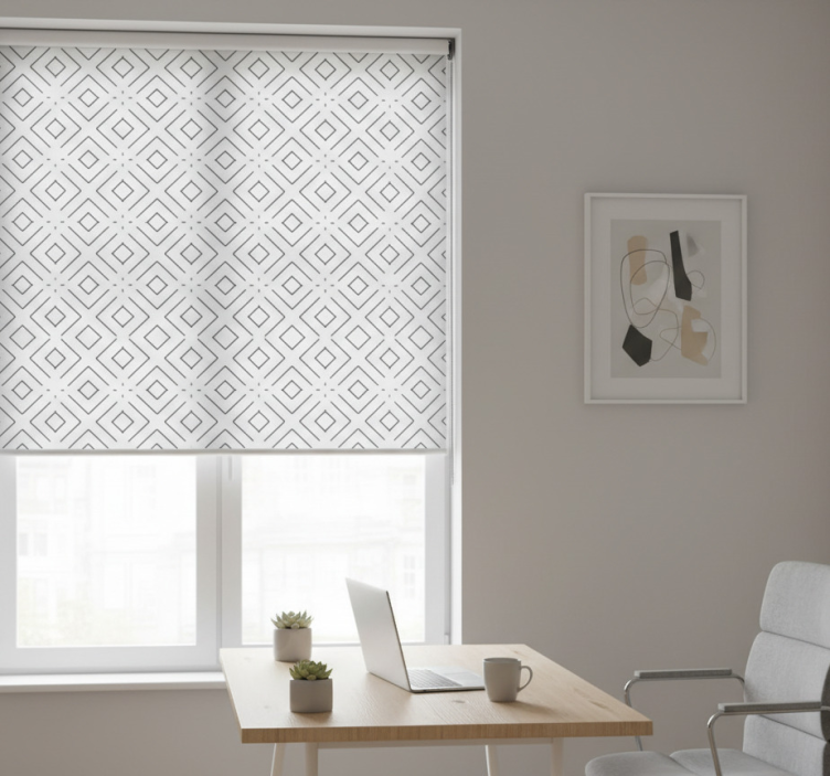Roleta do biura biały geometryczny wzór z cienkimi liniami