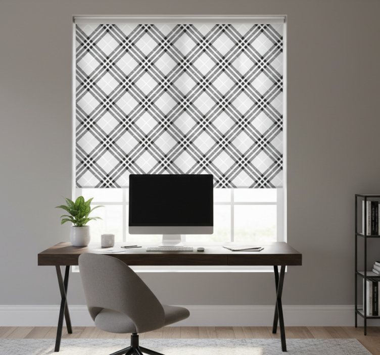Roleta do biura w czarno-białą szkocką kratę