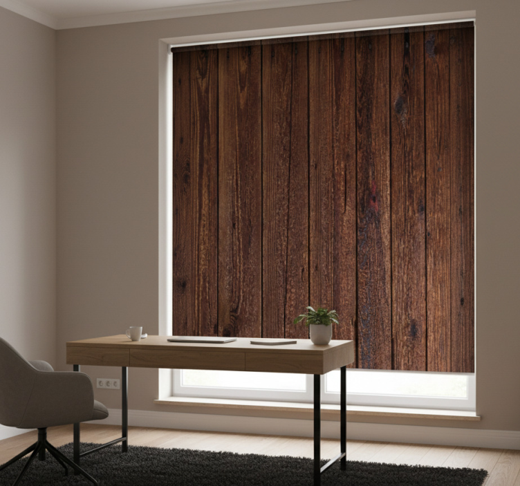 Roleta do biura z ciemnymi, rustykalnymi deskami