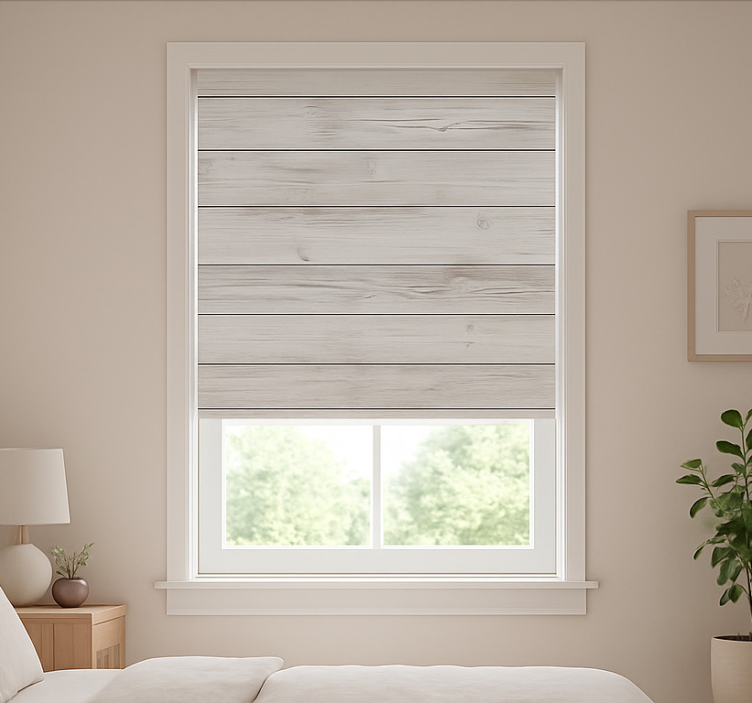 Roleta w tekstury i wzory w poziome bielone drewno
