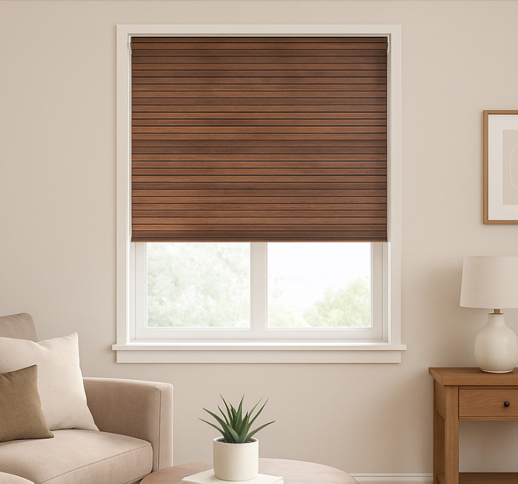 Roleta w tekstury i wzory w równoległe listwy orzechowe