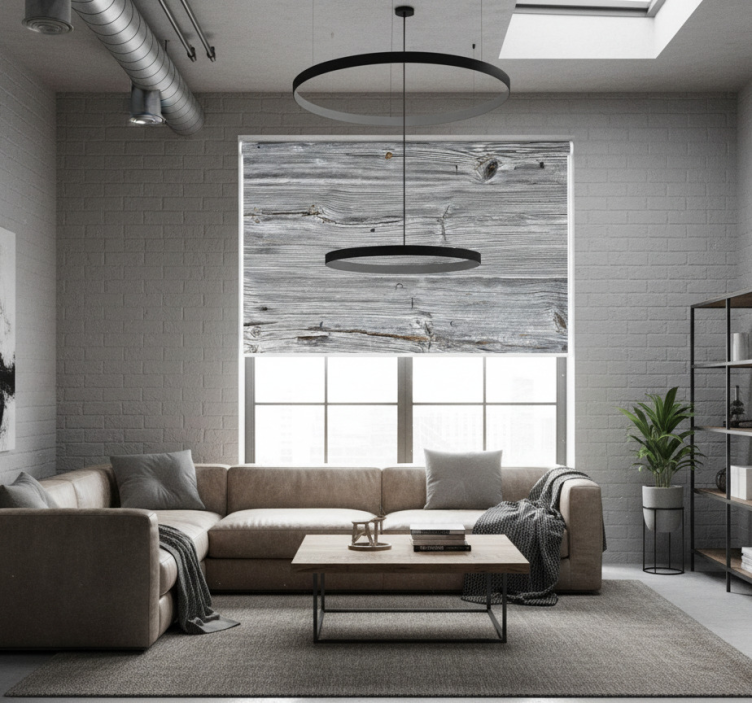 Roleta w tekstury i wzory w szarym drewnie postarzałym