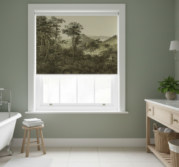 Roleta z drzewami w górzystym lesie