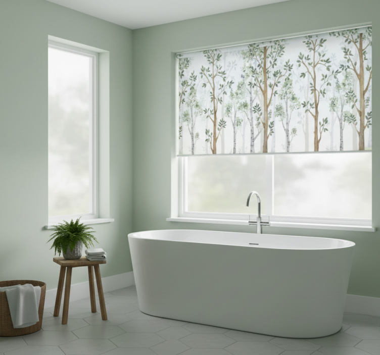 Roleta z drzewami w minimalistycznym stylu botanicznym