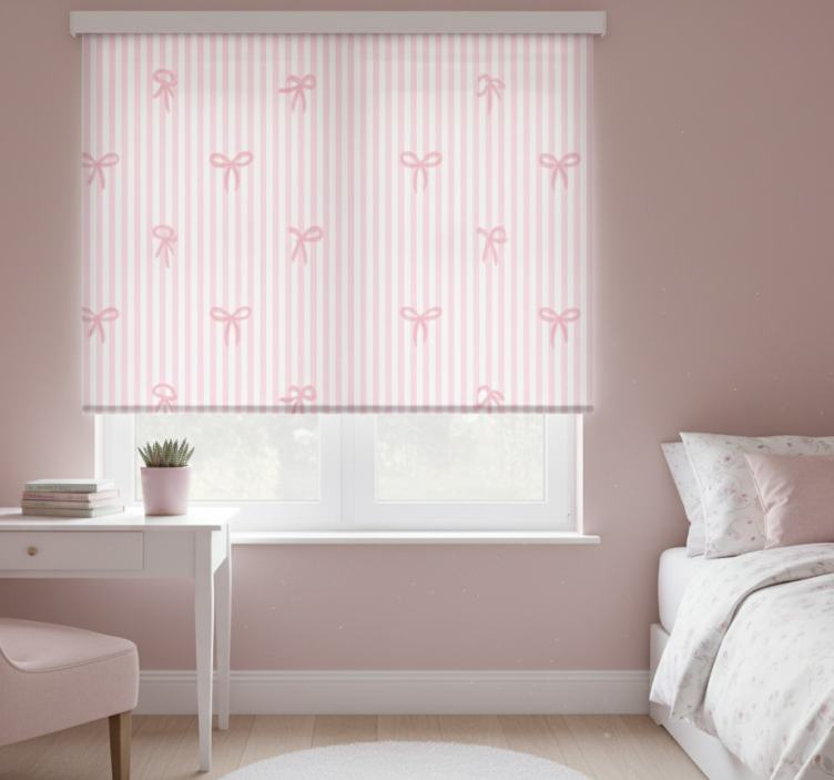 Różowa roleta w różowe paski i kokardki